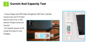Collegare il dispositivo da caricare ed appare il voltaggio , la corrente instantanea e la carica in atto in mah.
